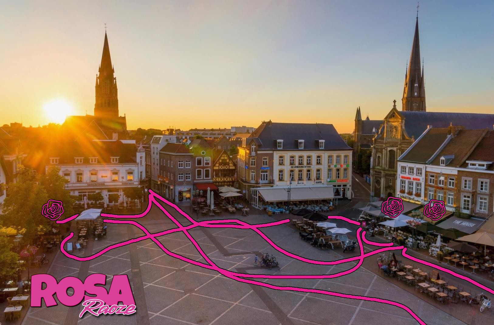 Rosa Raoze duurt van 17u tot 21u, de finish kan bezocht worden tussen 21u en 22u op de Markt waar onze eigen Rosa op je wacht.